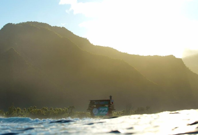 Sem ondas em Teahupoo, a etapa do Taiti só deve reiniciar na segunda-feira (Foto: Reprodução/Twitter WSL)