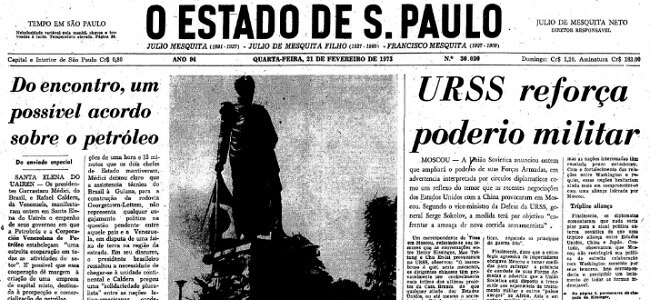 Foi notícia em 21 de fevereiro de 1973 URSS reforça poderio militar |