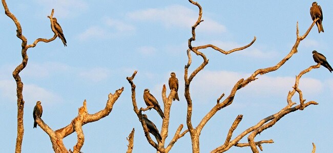 | Os falcões de fogo espalham incêndios para desentocar suas presas. Crédito: Geoff Whalan |