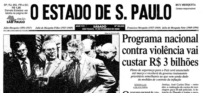 Foi notícia em 19 de fevereiro de 2000 Programa nacional contra violência vai custar R$ 3 bilhões |